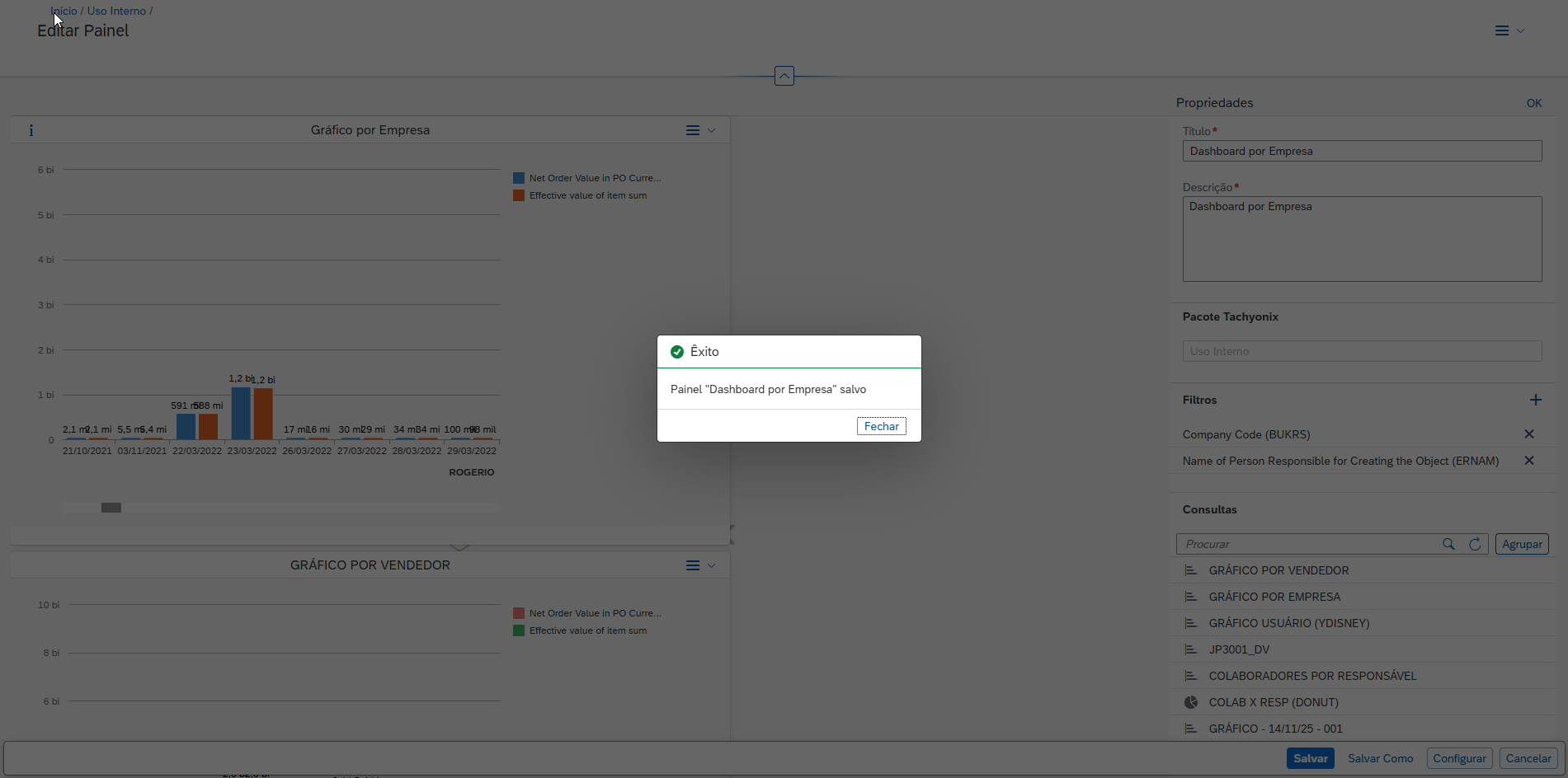 Clique em “Salvar” e o gráfico será adicionado no dashboard