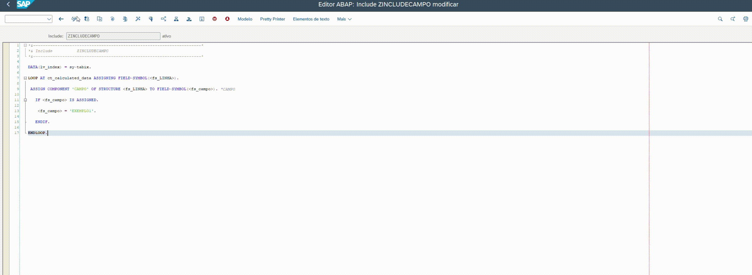 - Include: Um dos principais pontos dentro do campo customizado. É possível escolher um Include do SAP para fazer alguma regra de negócio e também para trazer valores para esse campo.