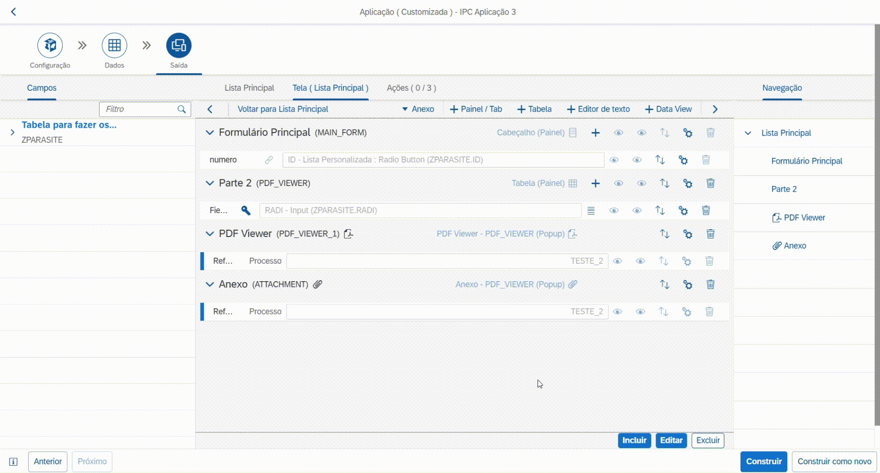 - Abra a subseção Tela (Lista Principal) da etapa Saída;