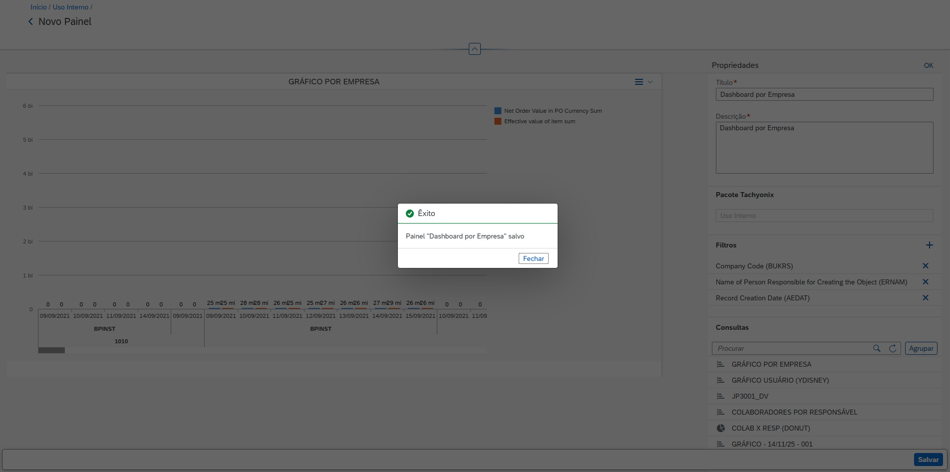 Clique em “Salvar” e o dashboard será criado