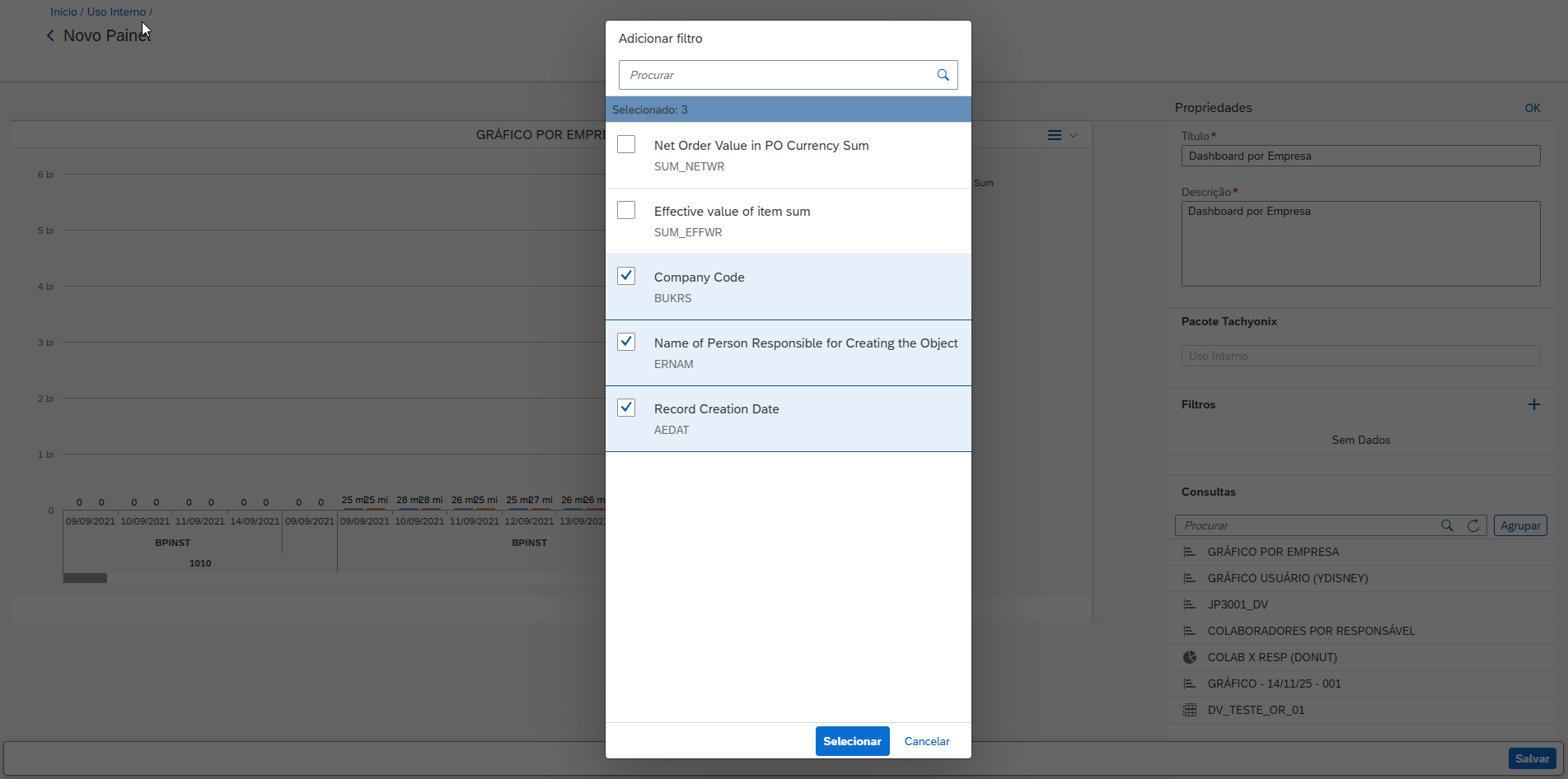 Em seguida selecione os campos que deseja utilizar como filtro