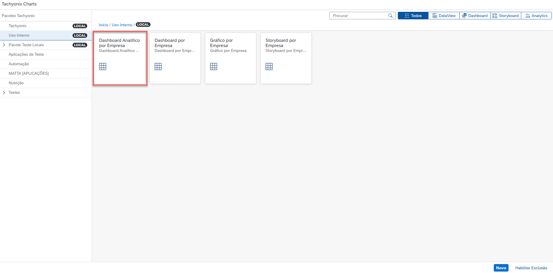 Selecione o pacote Tachyonix e clique no dashboard que desejado