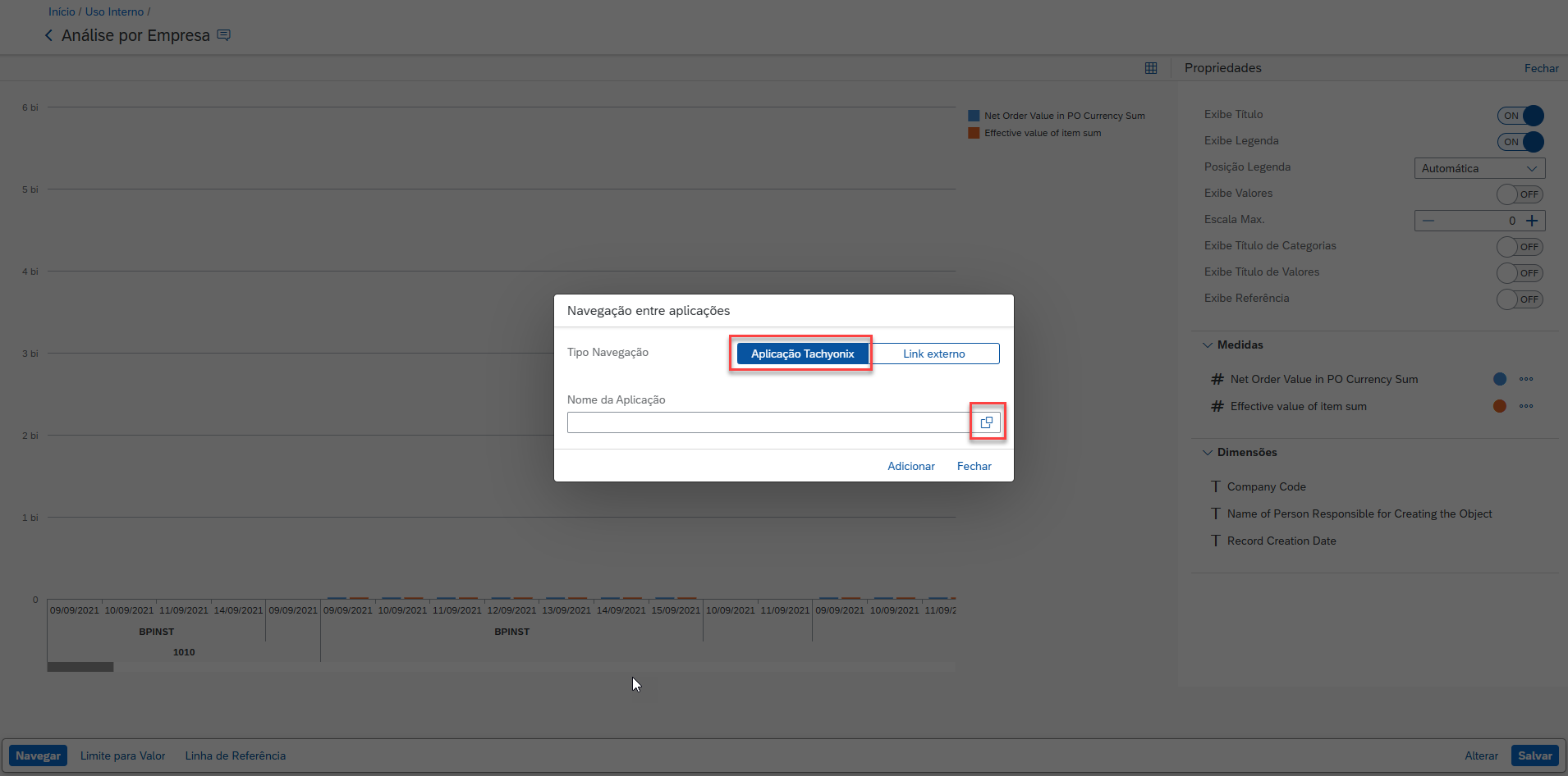 Clique nos ícones indicados nos campos para fazer a relação dos campos que serão informados para a aplicação no momento da navegação. Em seguida clique em “Adicionar”