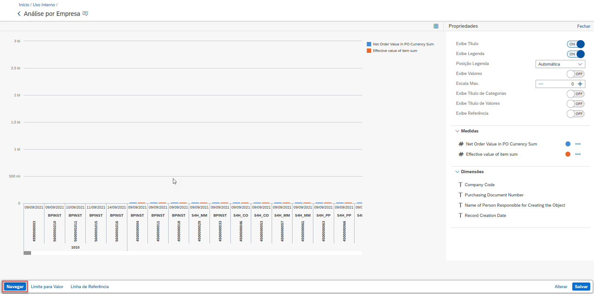 No caso do dashboard, cada navegação configurada fica disponível somente para o gráfico onde a navegação foi configurada, e não para todos os gráficos do dashboard.