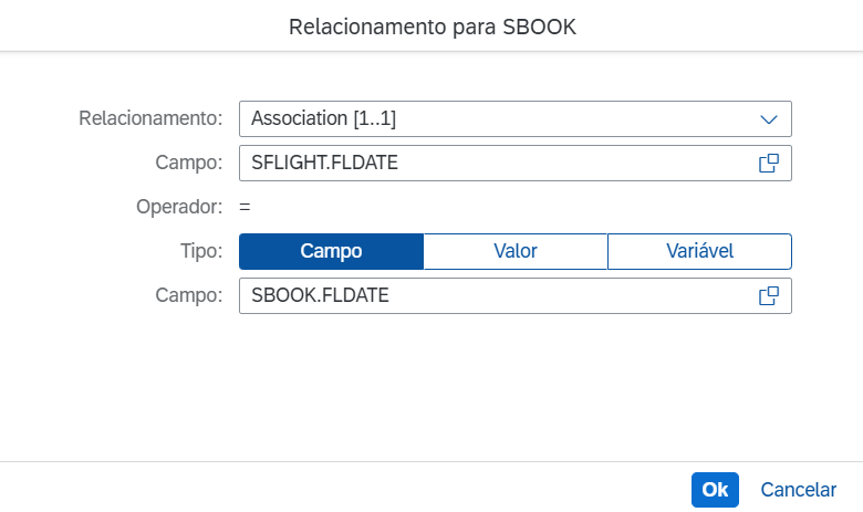 O usuário tem a flexibilidade de utilizar a mesma Configuração do Builder para criar diferentes tipos de associação entre as tabelas, bastando configurar o campo Relacionamento conforme as imagens abaixo.