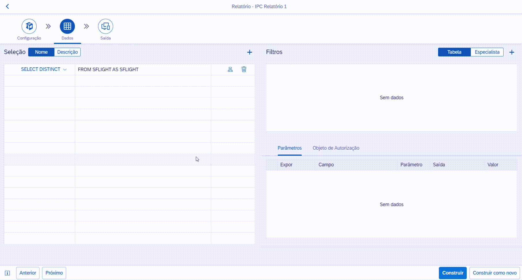 - Abra a subseção Tela (Lista Principal) da etapa Saída;