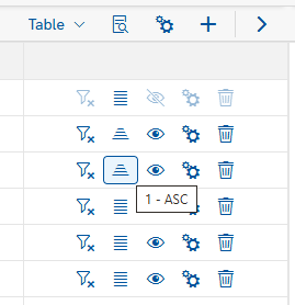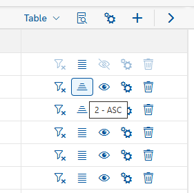 Ao parar com o mouse sobre o ícone de ordenação teremos os seguintes resultados