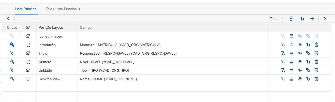 - Clicar no ícone de ordenação (ASC/DESC). Neste exemplo acionaremos o ícone da Segunda coluna denominada Responsável;