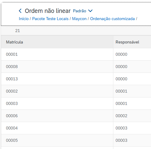 Mesmo que a coluna 'Matrícula' esteja antes de 'Responsável', é possível definir 'Responsável' como prioridade 1 e 'Matrícula' como prioridade 2.