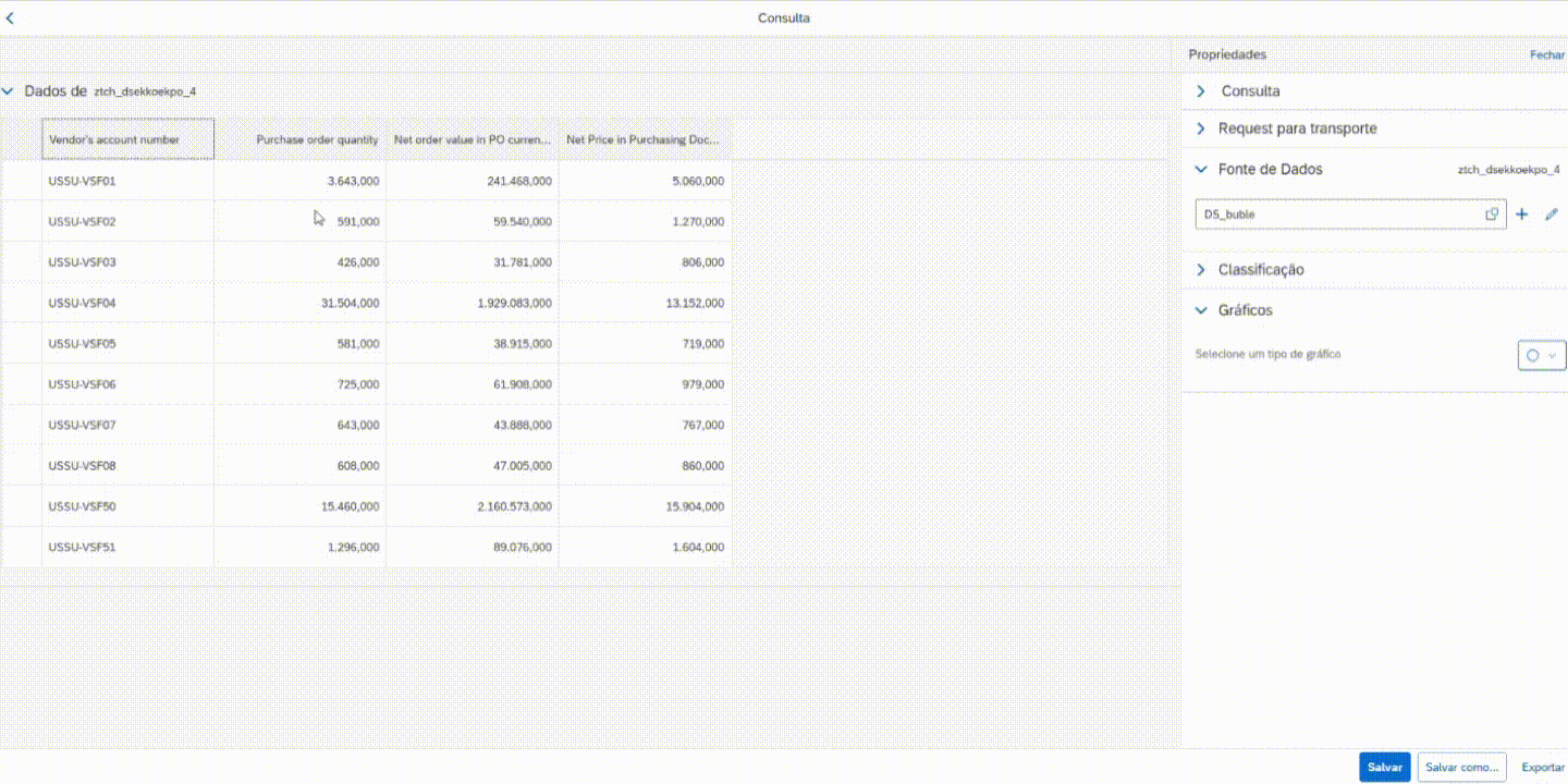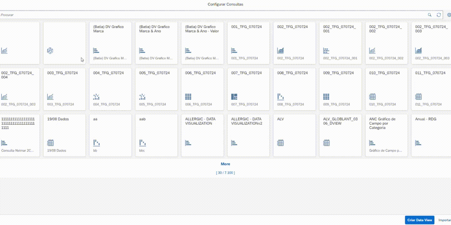 OBS: No gráfico de dados existem 2 (duas) opções de exibição, são elas, grade e hierarquia. Como padrão a ferramentão exibe o formato grade, mas fica a critério do usuário o formato desejado.