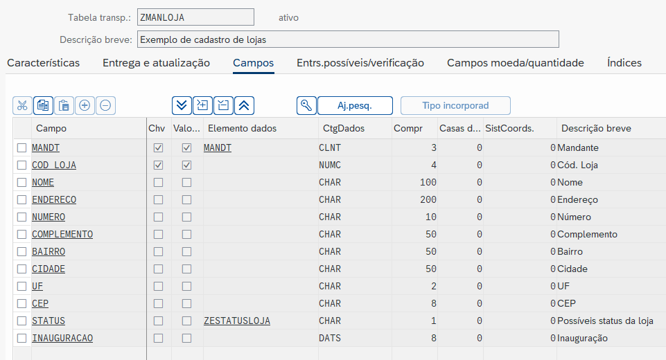Neste caso modificaremos a tabela utilizada no exemplo Criando uma fonte de dados CDS adicionando o seguinte campo: