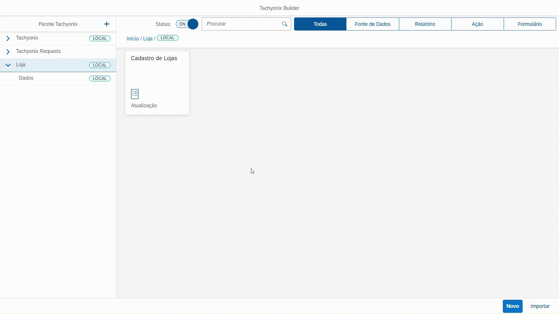 Após abrir a aplicação no Tachyonix Builder você notará que os campos já estão disponíveis para uso. Com isso, basta seguir os seguintes passos.