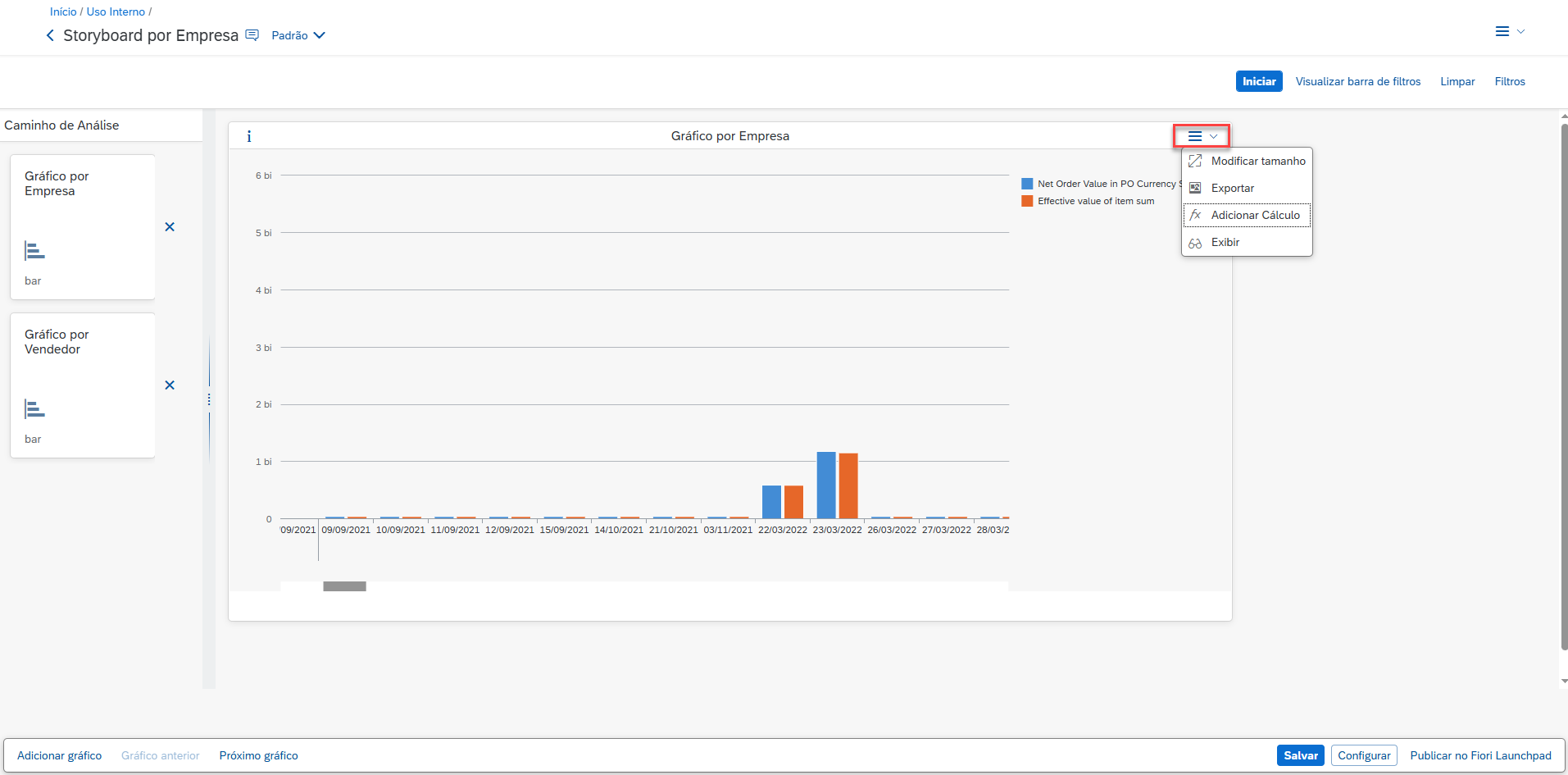 No botão “Padrão”, é possível criar variantes utilizando os filtros para explorar melhor os dados