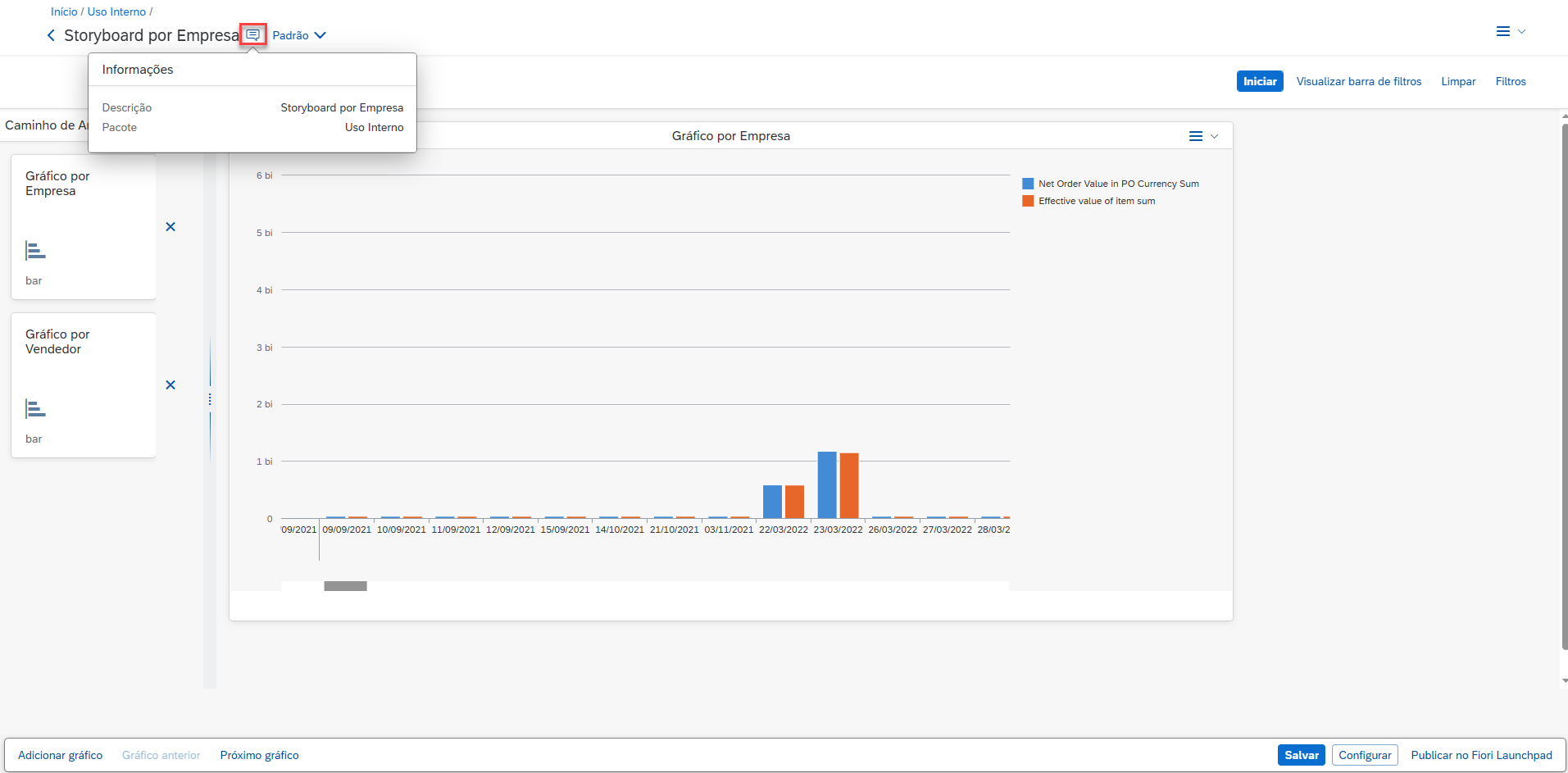 O storyboard será exibido. Ao clicar no ícone ao lado do nome do storyboard, são exibidas as seguintes informações: Descrição e pacote