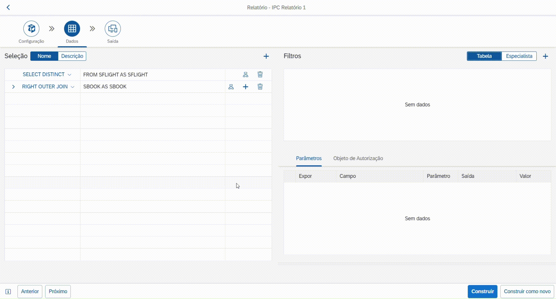 - Na seção Dados, em Filtros, acione a aba - Especialista;