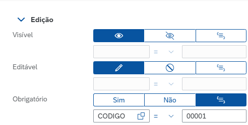 - Obrigatoriedade: Obrigatório, Não Obrigatório ou Obrigatório de forma dinâmica.