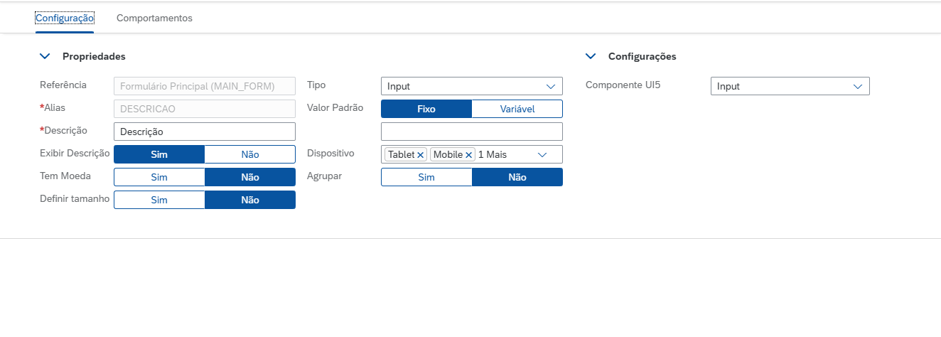 - Editabilidade: Editável, Não Editável ou Editável de forma dinâmica.