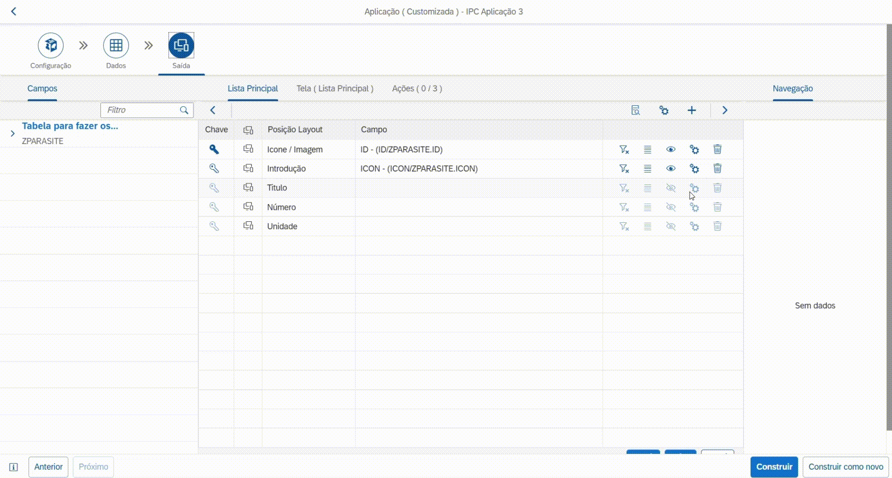 - Abra a subseção Tela (Lista Principal) ou Lista principal da etapa Saída;