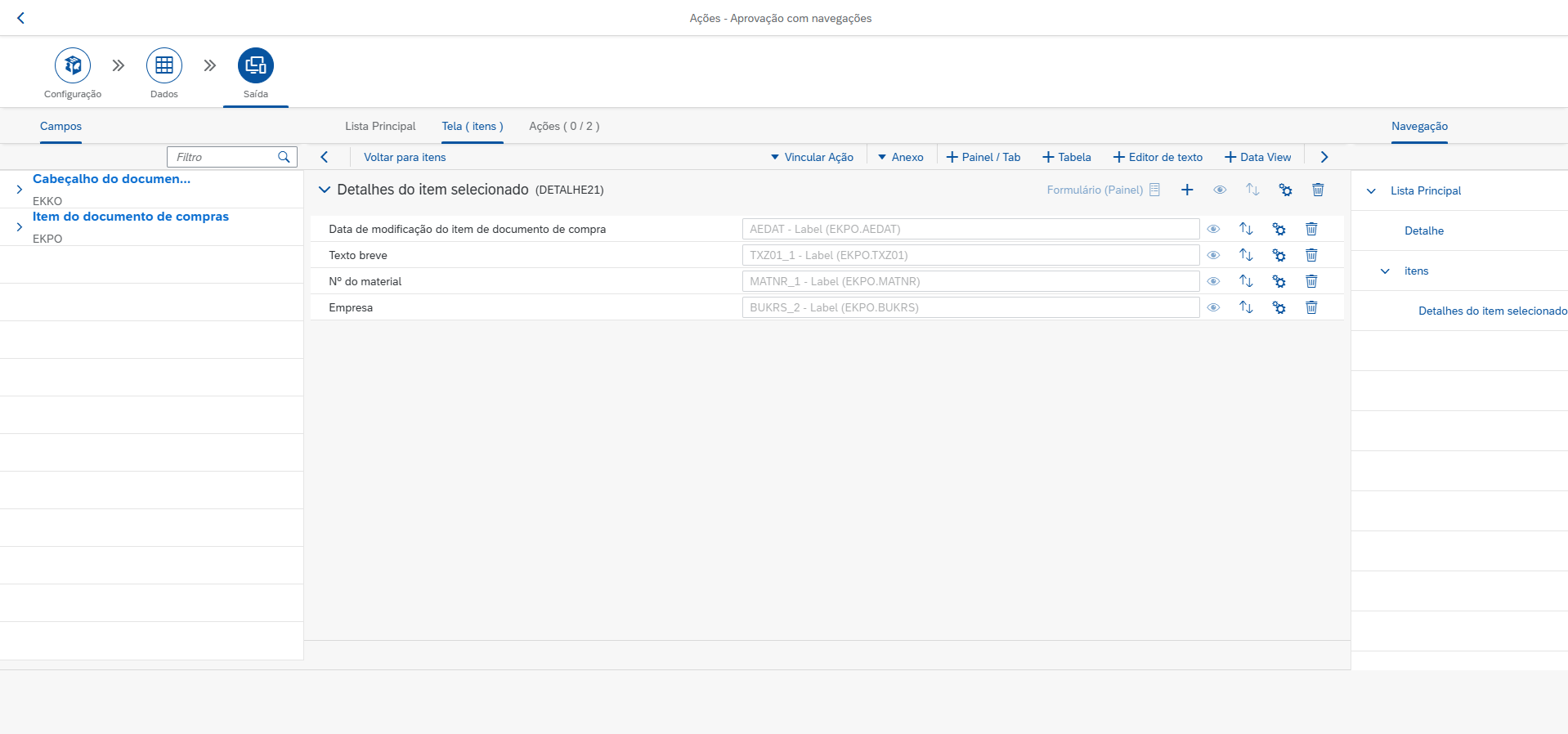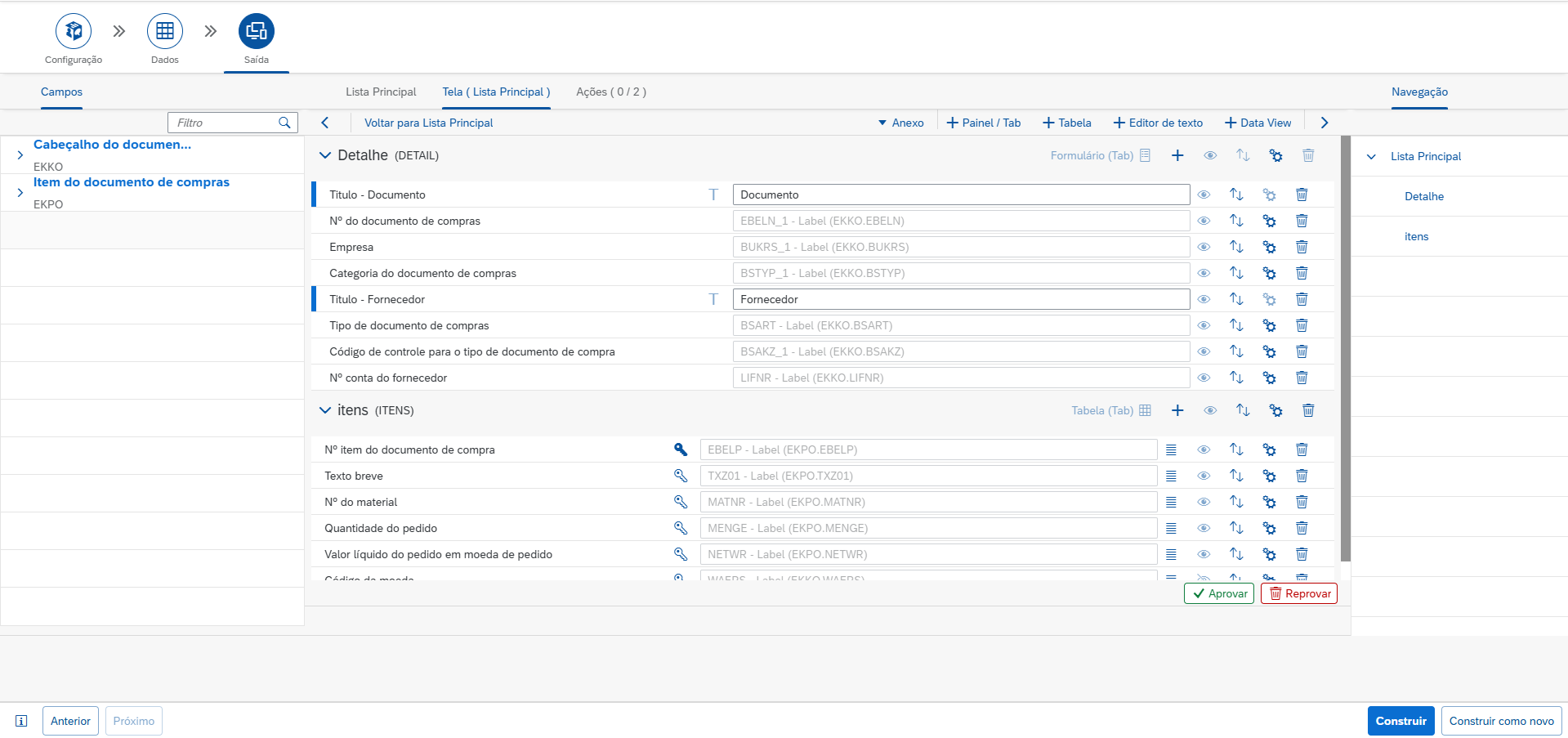 - Selecione os campos da tabela que deseja exibir na tela de detalhes.