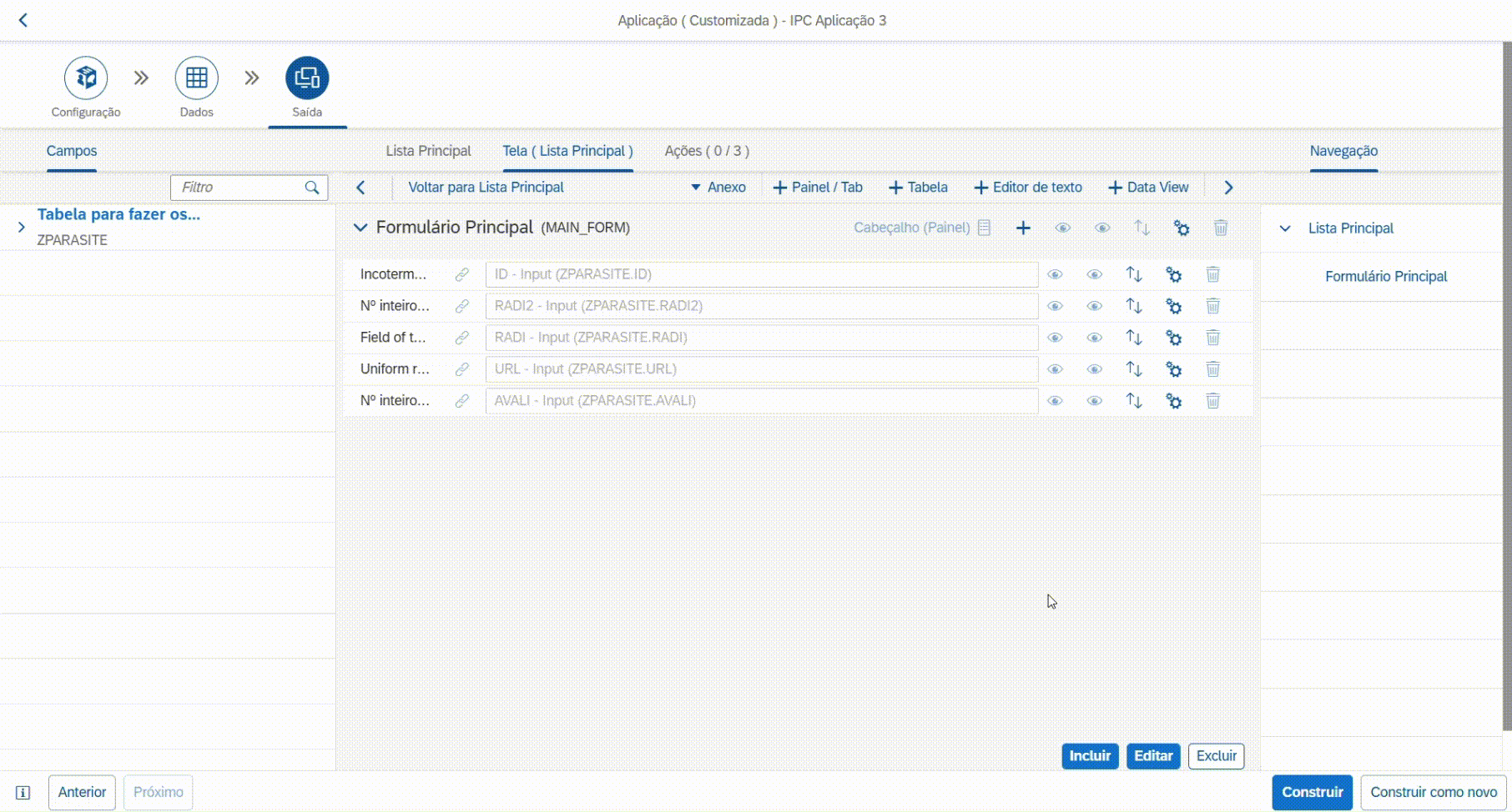 - Abra a subseção Tela (Lista Principal) da etapa Saída;