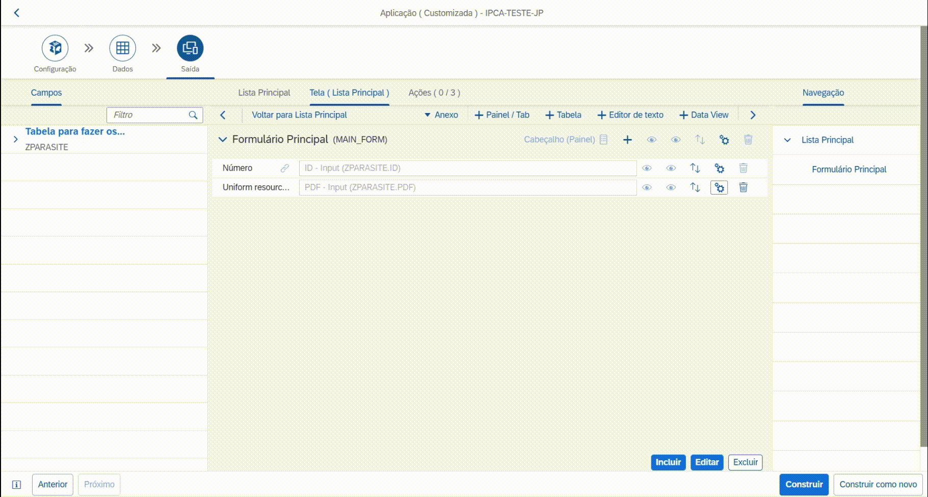 - Abra a subseção Tela (Lista Principal) da etapa Saída.