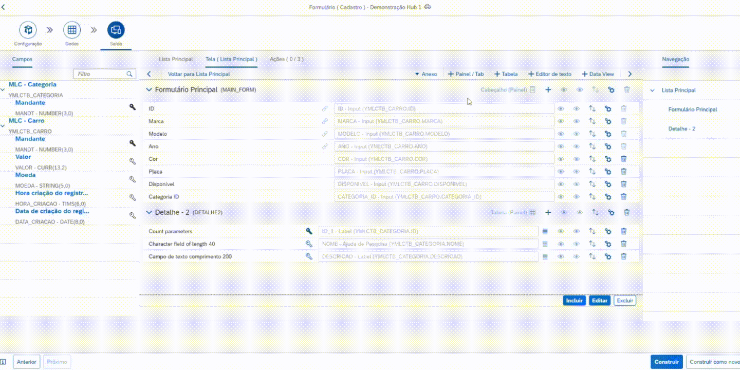 Por exemplo, para que o tab a seguir seja exibido na tela de Edição, é necessário que o campo MARCA tenha um valor igual a Fiat.