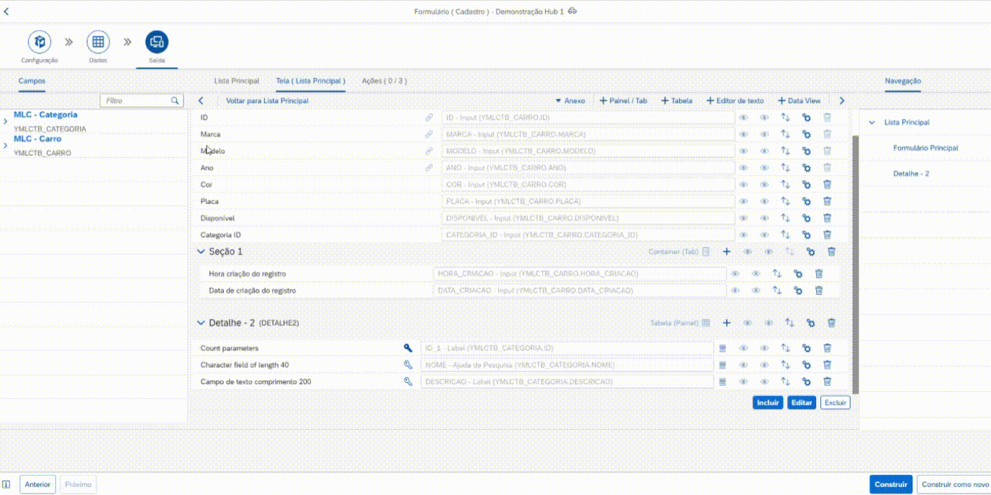 - Abra a subseção Tela (Lista Principal) da etapa Saída;