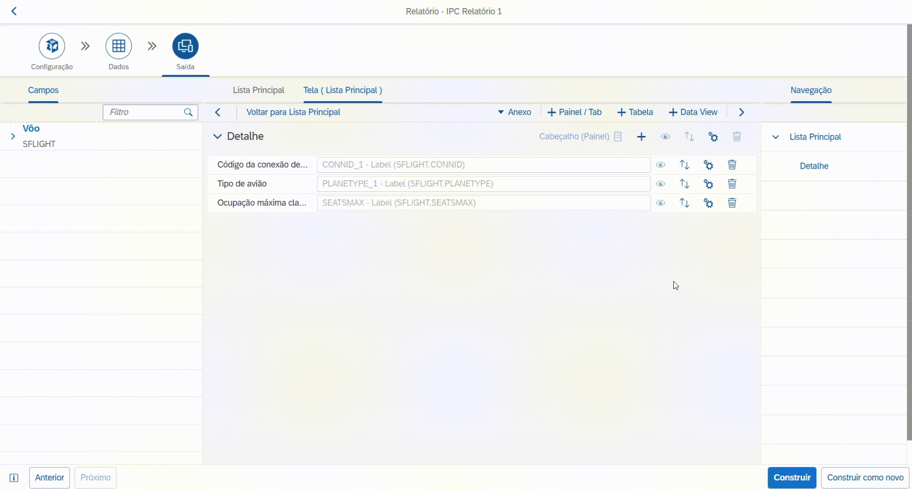 - Abra a subseção Tela (Lista Principal) da etapa Saída;