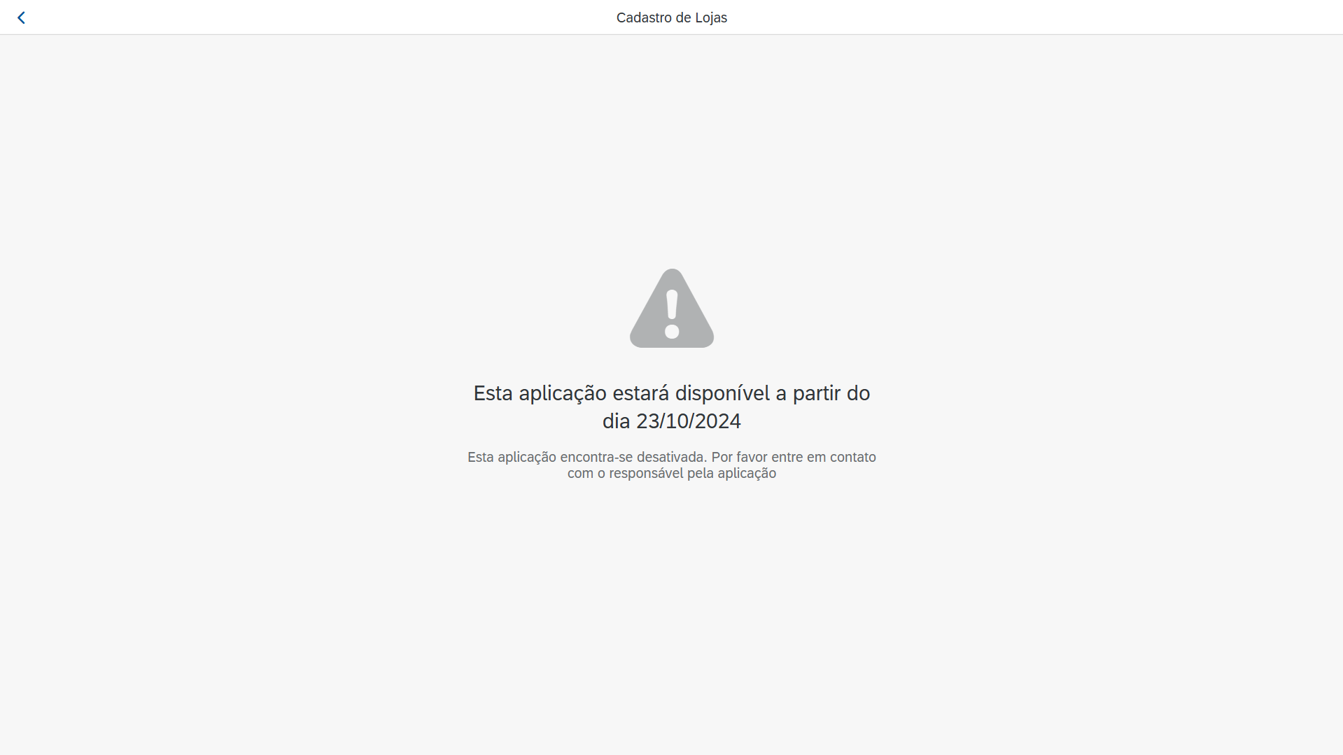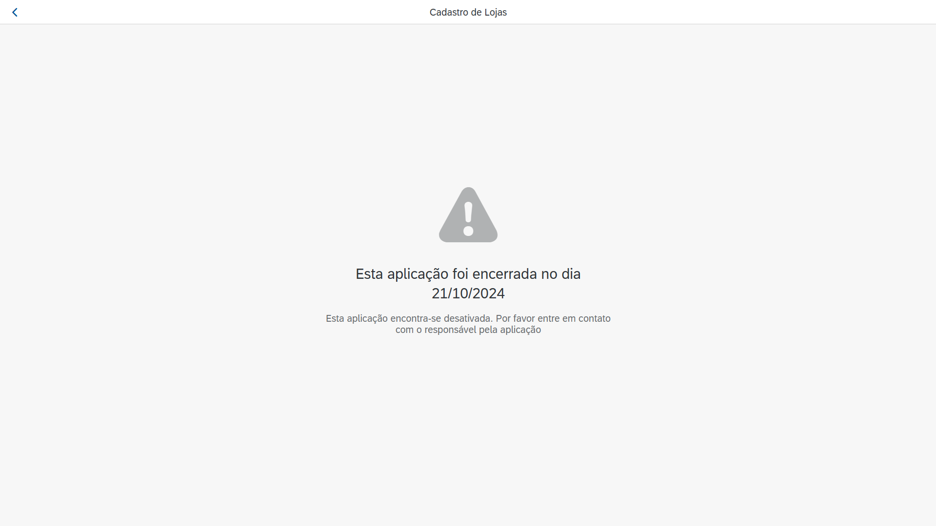 - "Esta aplicação encontra-se desativada. Por favor entre em contato com o responsável pela aplicação".